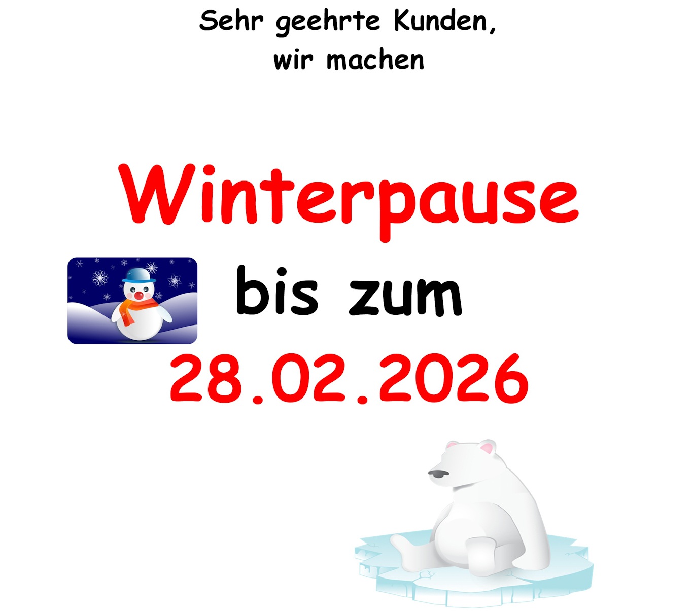 ACHTUNG wir machen Winterpause bis zum 28.02.2026!